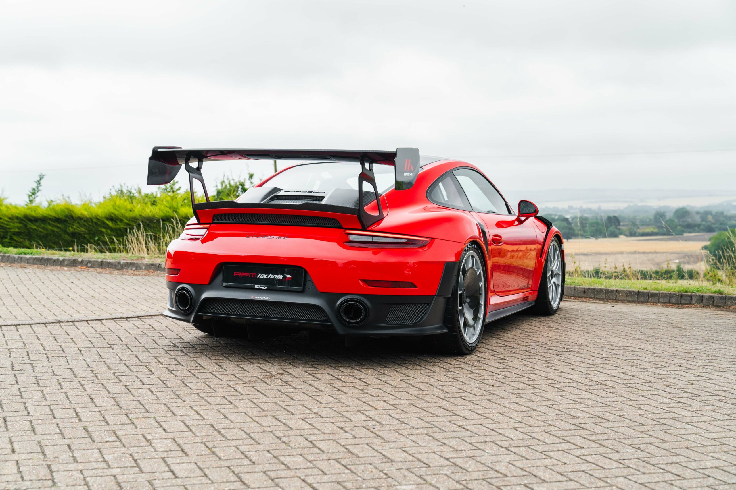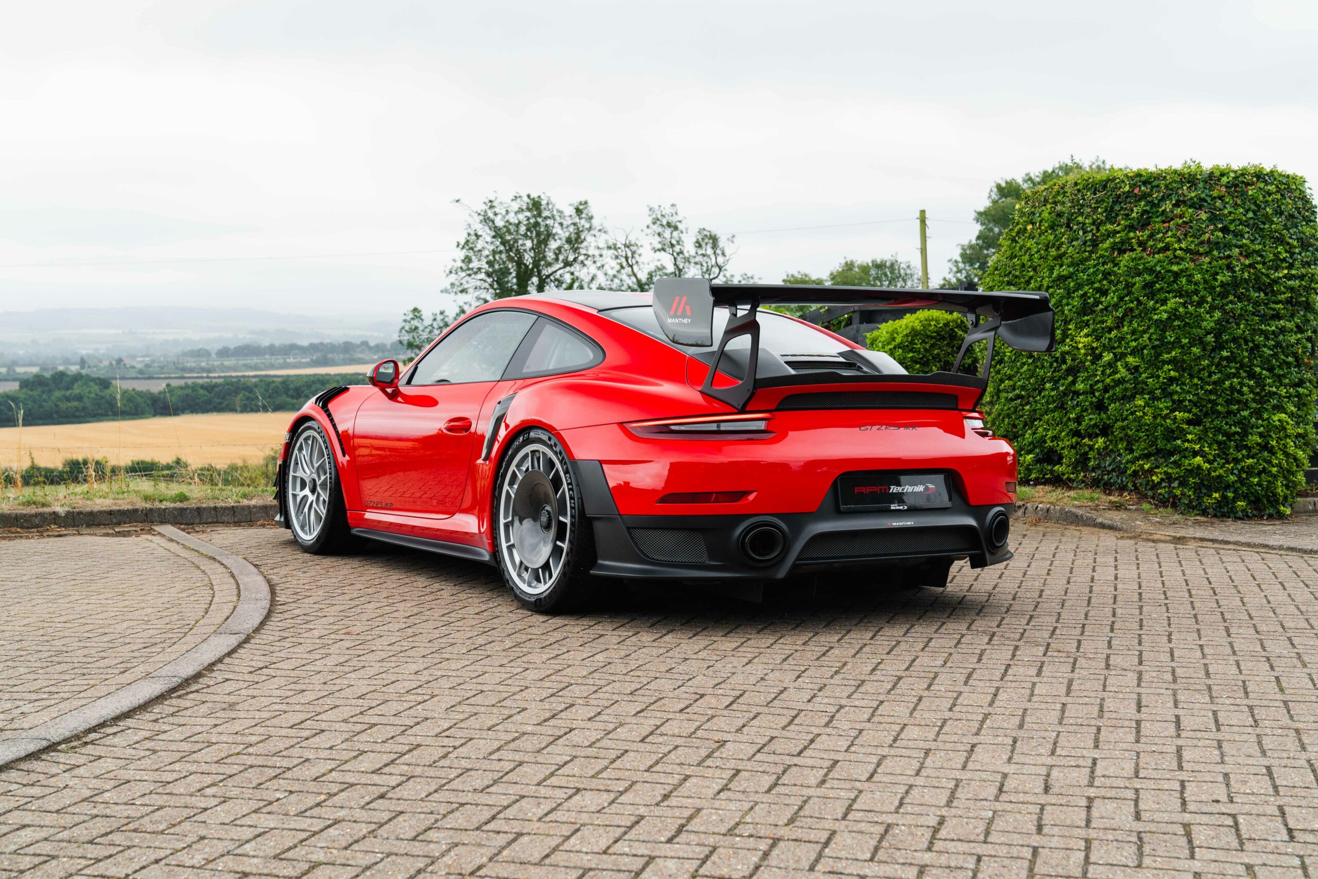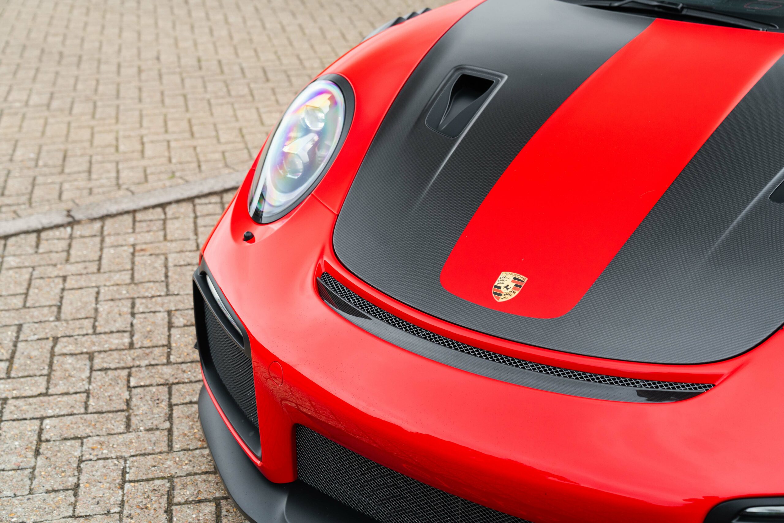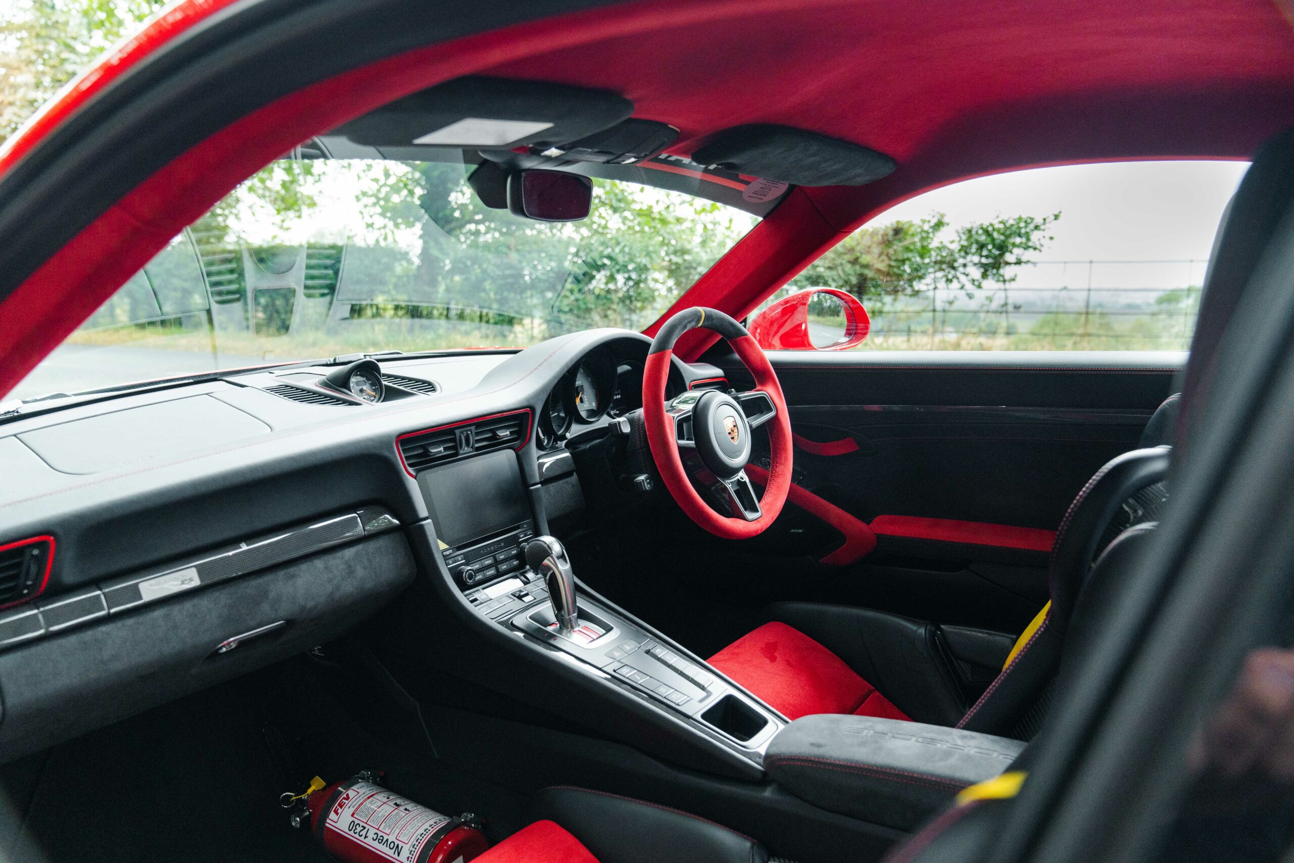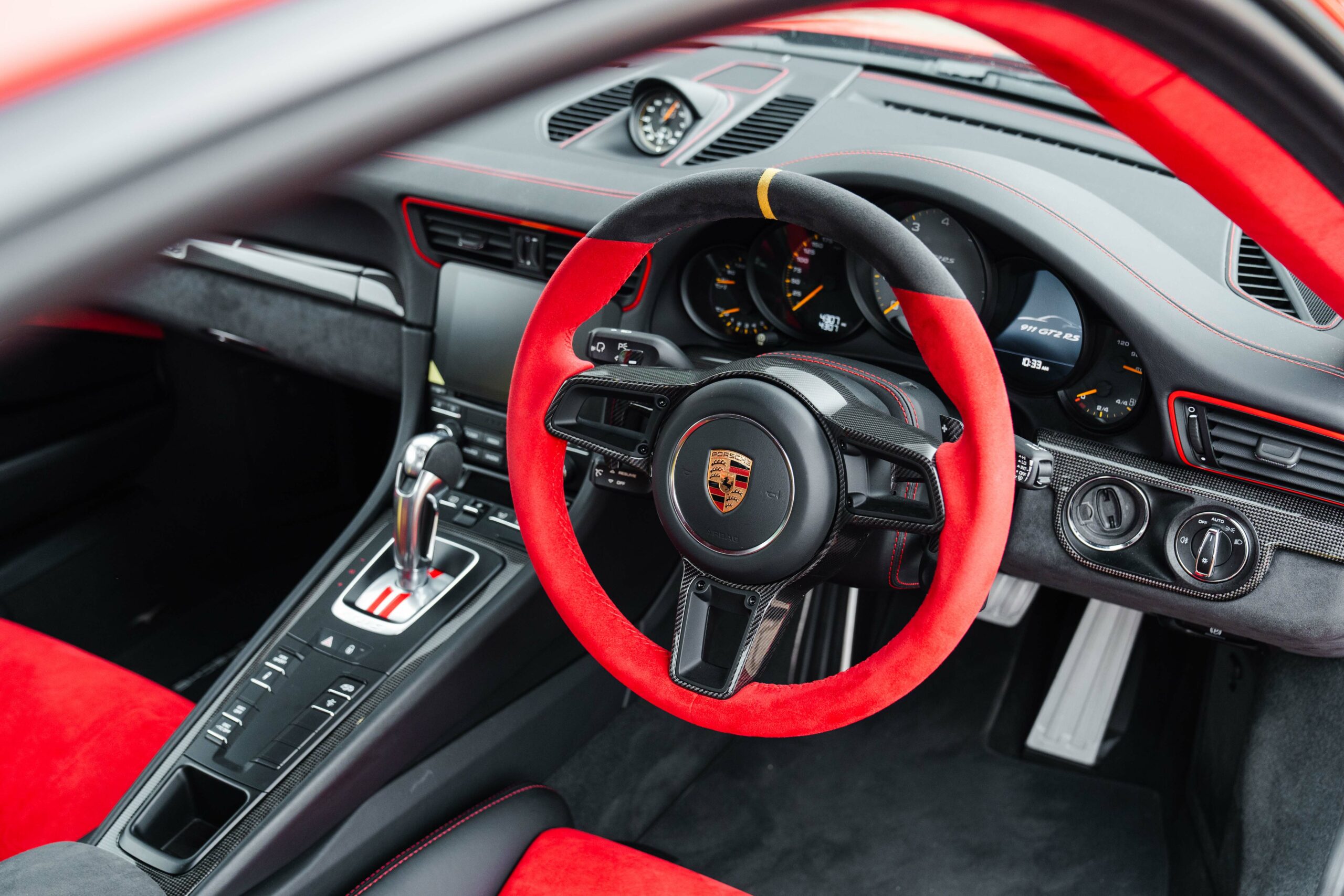 Guards Red, 918 bucket seats, Extended leather with deviating stitching in Guards Red, Weissach package, Front axle lift, PCCB’s (Porsche Carbon Composite Brakes), LED lights with PDLS+, BOSE stereo, Sport Chrono Plus package, Reversing Camera, Cruise control, Interior light package, Exterior mirror top half in carbon fibre, Leather steering column, Sport look pedals, Carbon fibre interior trims, Auto dimming mirrors, Auto wipers, PCM4 with Apple Carplay, Air conditioning, Upper part of windscreen tinted, 12 o’clock marker in Yellow, Seat belts in Racing Yellow, Centre console storage lid with Porsche logo in Alcantara, Fuel cap in aluminium look, Sun visors in Alcantara, Carbon fibre illuminated door sills and 20/21″ Magnesium GT2RS wheels.