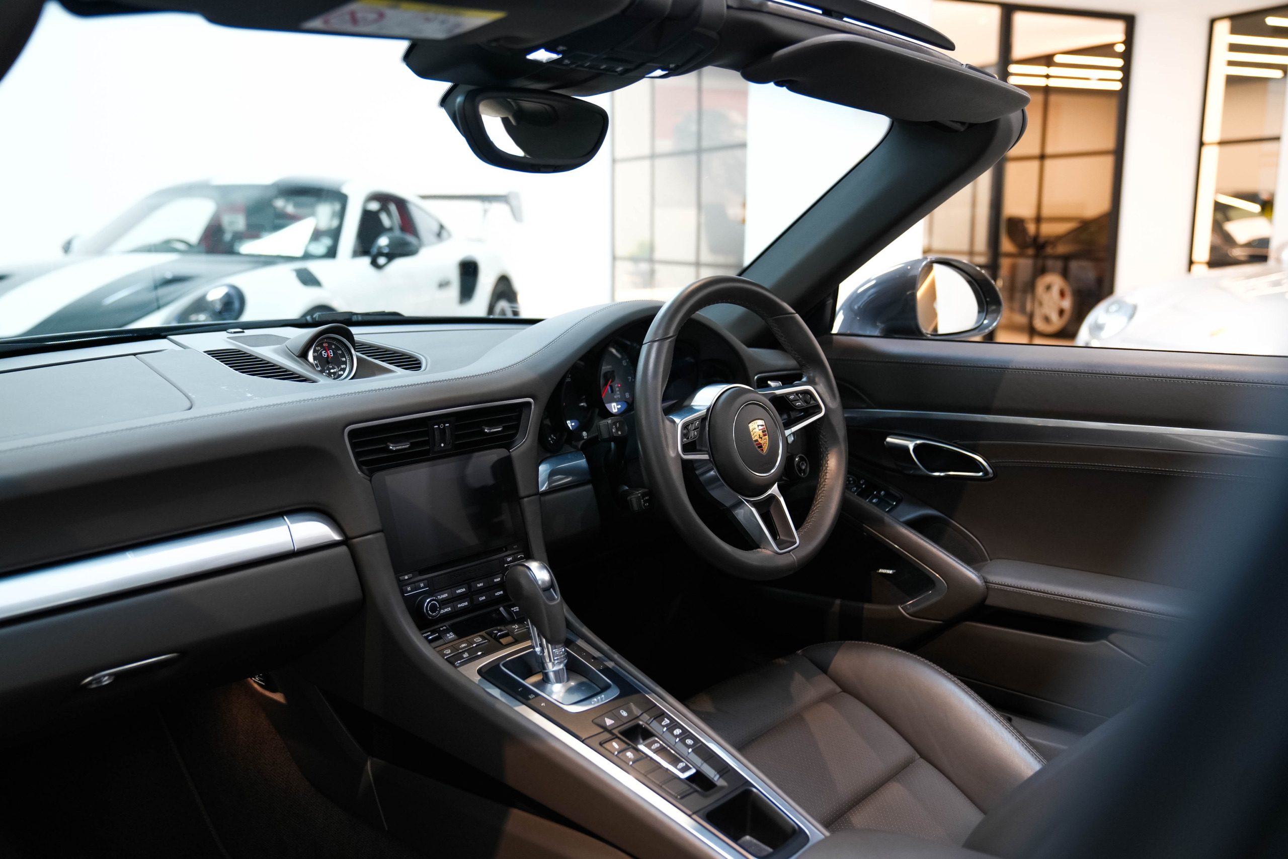 Agate grey metallic, Sports seats (4-way), Rear axle steering, Sports chrono package, Sports exhaust system, SportDesign exterior mirrors, Power steering plus, Park assist with reversing camera, BOSE sound system, Heated seats, Speed limit display, Cruise control, Heated multifunction steering wheel, Bi-xenon headlights with PDLS, Homelink, 20″ Carrera classic wheels, Full PPF coverage.