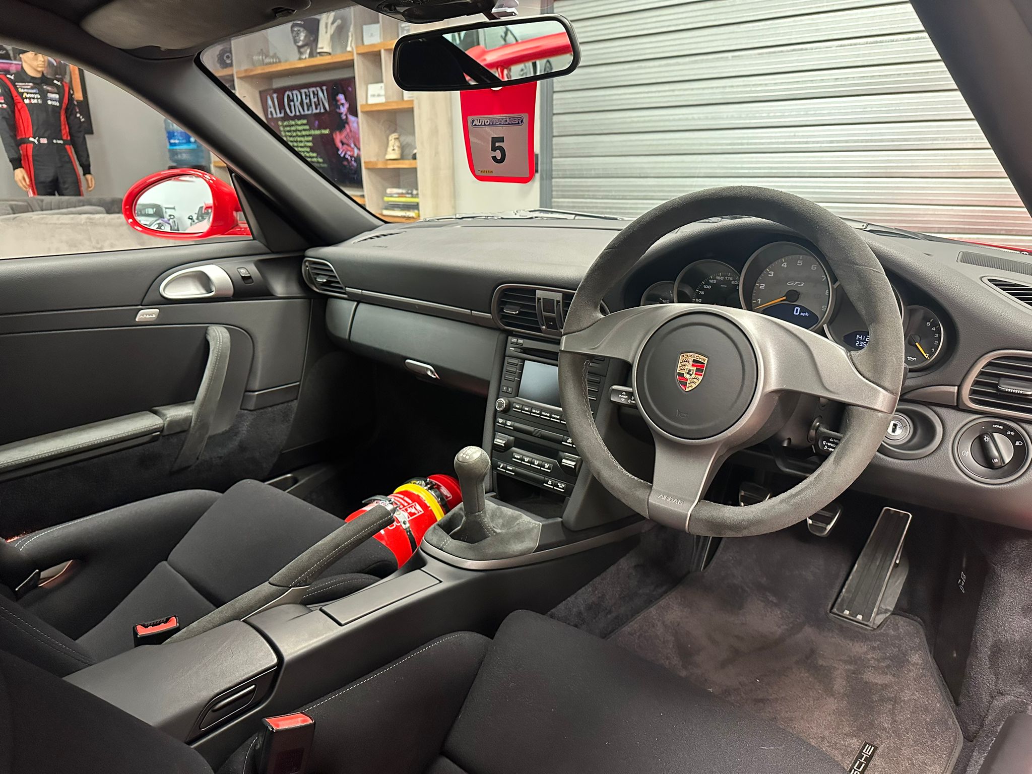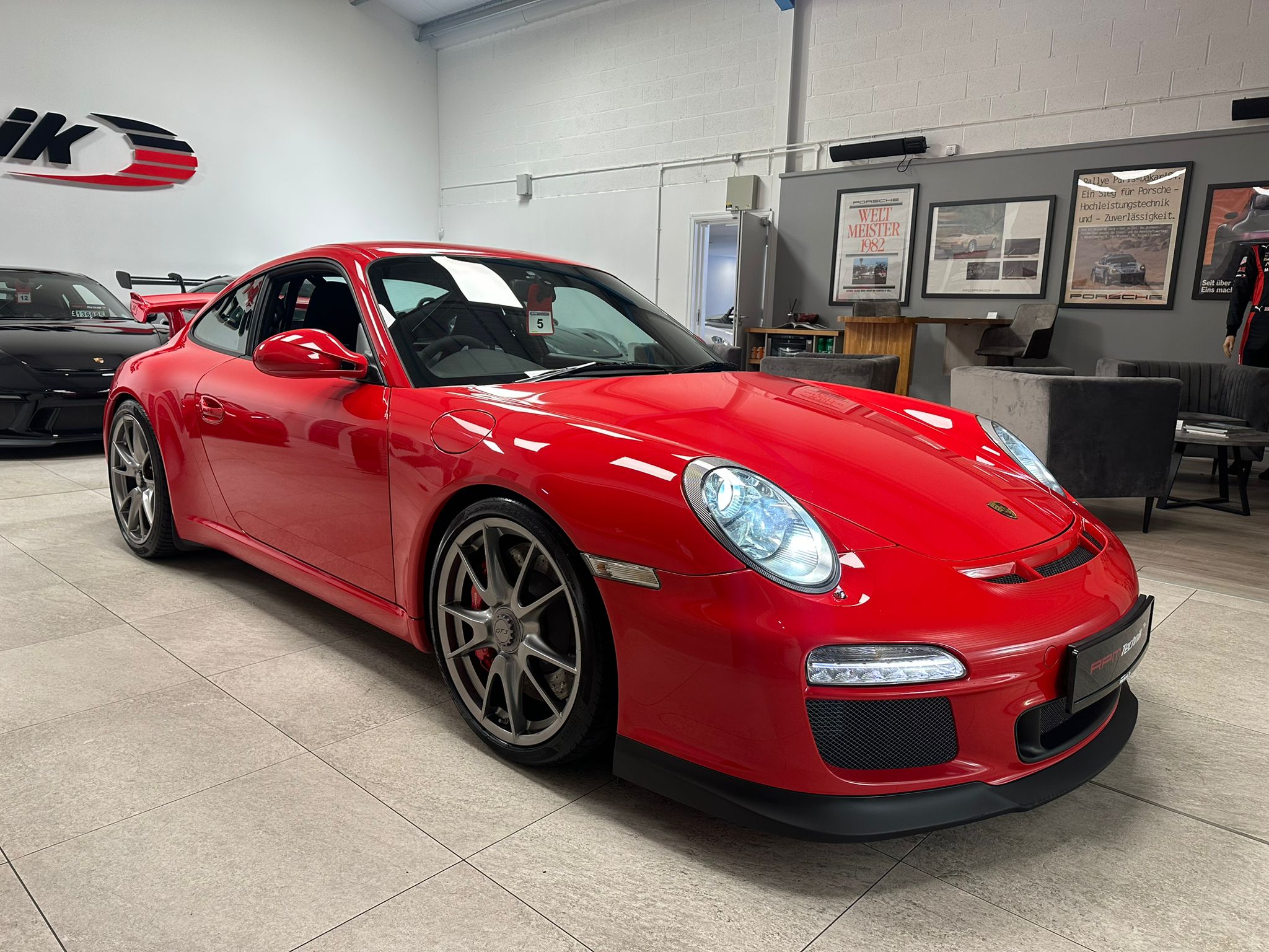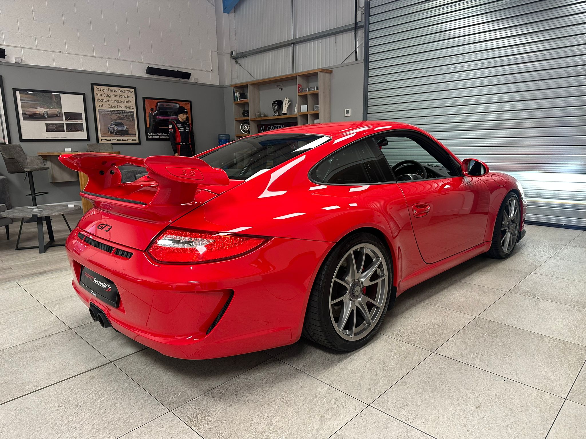 Guards Red, M003 Clubsport package, Nomex sport bucket seats, Xenon lights, Upper part of windscreen tinted, CDR-30 stereo and 19″ GT3 centre lock wheels in Silver.